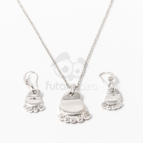 Fashion Fehérarany bevonatos tappancsos ékszer szett Finom kidolgozású ékszer, ami feldobja hétköznapi viseletedet vagy finoman kiegészíti alkalmi öltözeted. Bátran viselheted egy üzleti találkozón vagy randin, de a mindennapi öltözéked részeként is biztosan felhívja rád a figyelmet. Stílusos megjelenés a nap bármely szakában. Finomságot és eleganciát sugároz viselőjéről.A lánc hossza: 50 cmA medál mérete: 2x3 cmA fülbevaló mérete: 2x1,5 cmAz ár 1 db éksz