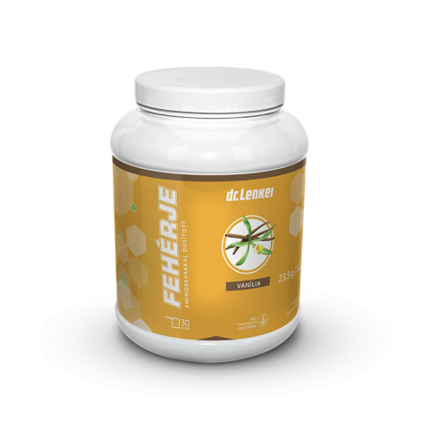 Dr. Lenkei Teljes értékű tejsavó-fehérje aminosavakkal dúsítva Vanília ízű; Édesítőszerrel; Különleges élelmiszer, például sportoláshoz, fizikai terheléshez, 30 adag HOZZÁADOTT CUKROT NEM TARTALMAZ. 100% TERMÉSZETES ÉDESÍTÉSSEL. A fehérjeporunk ideális vá