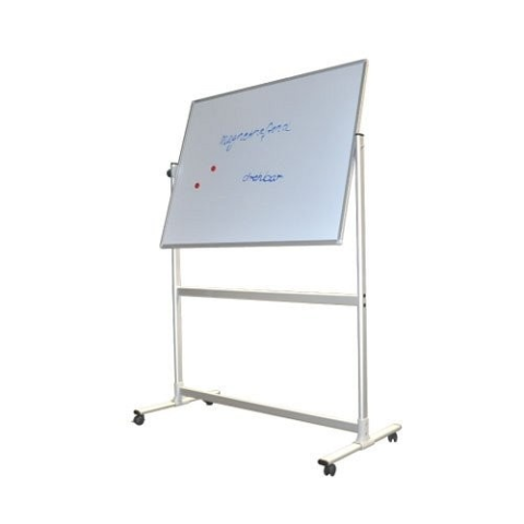 FRANKEN 360 fokban állítható, kétoldalú fehértábla, szürke alumínium állvánnyal. 4 görgővel mozgatható, amelyből kettő rögzíthető. Írószer- és mágnestartóval. Mágneses, lakkozott írófelület, táblamarkerrel írható, törölhető. A tábla felületén védőfólia