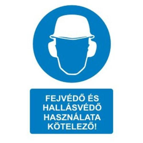 1 kép Fejvédő és hallásvédő használata kötelező! - műanyag, 160*240mm