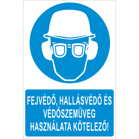 1 kép Fejvédő, hallásvédő és védőszemüveg használata kötelező! - műanyag, 220*330mm