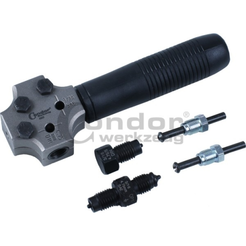 Peremezés kiszerelés nélkül A kicsi és kompakt kialakítás lehetővé teszi, hogy közvetlenül a jármű alatt dolgozzon, még szűk helyeken is domború és kettős peremekhez a DIN és SAE szerint ø 4,75 mm és ø 3/16 fékvezetékekhez G3/3