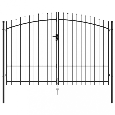 Fekete acél lándzsahegy tetejű kétajtós kerítéskapu 3 x 1,75 m kerti bútor termékleírás
