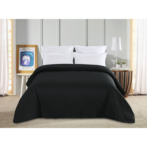 Teljes Fekete ágytakaró LEAVES mintával Méret: 170 x 210 cm termékleírás