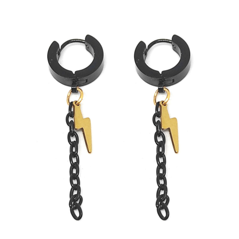 1 kép Fekete-arany nemesacél Villám láncos fülbevaló