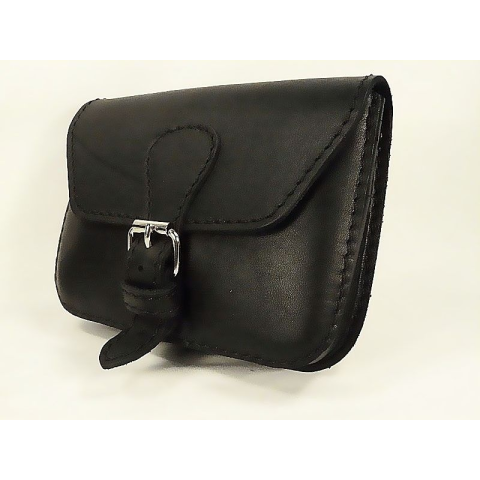 1 kép Fekete bőr övtáska, egyfakkos, csatos