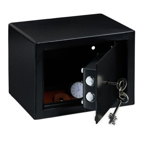 Fekete fali széf kulccsal 17x23x17 cm Védje értékeit, például útleveleit, pénzét vagy ékszereit az otthoni kompakt széffel. A fekete széf acélból készült, és kis sarkokba és fülkékbe illeszkedik. A bútorszéf szekrényekbe és komódokba is becsavarható. A pa