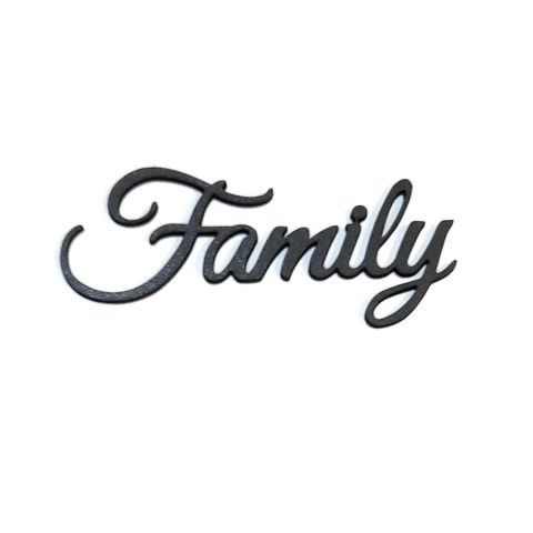 1 kép Fekete 'Family' felirat, HDF. Mérete: 10x4 cm