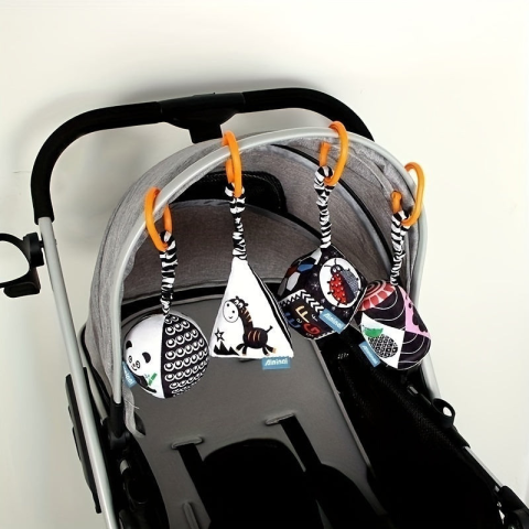 Egyedi és szupercuki Fekete-fehér babakocsis akasztós játék! Ez a játék garantáltan le fogja kötni a kicsik figyelmét, míg te nyugodtan intézheted a dolgaidat. A kis figura egyszerűen rácsatlakoztatható a babakocsi fogantyújára, így könnyedén szórakoztathatja a picit utazás közben.Tulajdonságok: (Szórakoztatás) A fekete-fehér mintázatokat nézve a csecsemők figyelme fokozódik, ezáltal megnyugtatja és fejleszti az őket. (Megértheti a textúrát) A különböző a