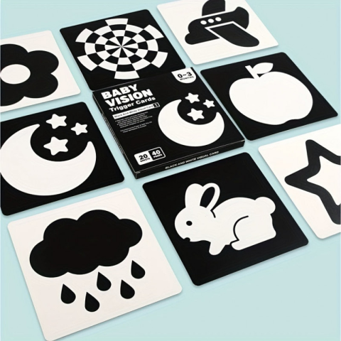 A Fekete-fehér Kontraszt Kártyák 0-3 hónapos babák számára remek lehetőséget nyújtanak a látás és a figyelem fejlesztésére már születéstől kezdve. Ezek a kártyák különleges mintáikkal és erőteljes kontrasztjaikkal tökéletesek a csecsemők vizuális élményei