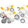 1 kép Fekete-fehér levelek és körök matrica tapéta, 350 x 200 cm