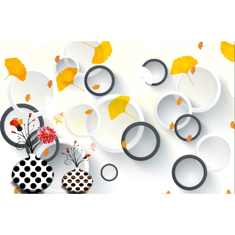 1 kép Fekete-fehér levelek és körök tapéta, 400 x 250 cm