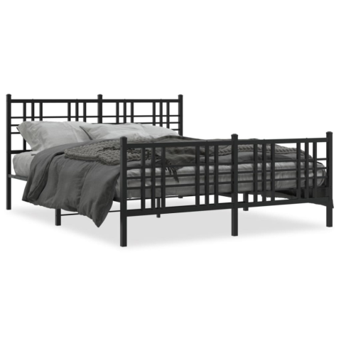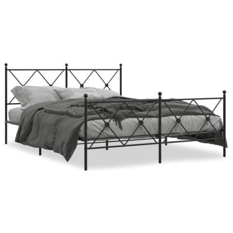 4 kép Fekete fém ágykeret fej- és lábtámlával 150 x 200 cm