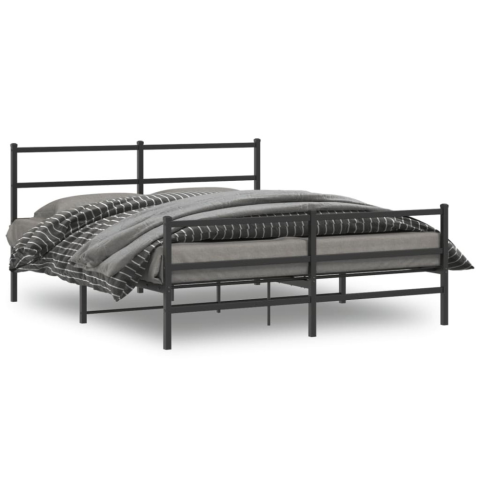 Teljes fekete fém ágykeret fej- és lábtámlával 150 x 200 cm termékleírás