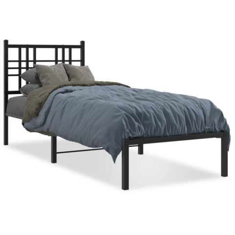 4 kép Fekete fém ágykeret fejtámlával 75 x 190 cm