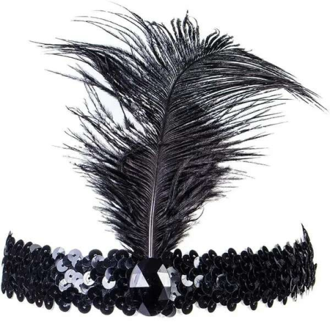 Fekete flitteres tollas fejpánt bulikra jelmez 1 kép