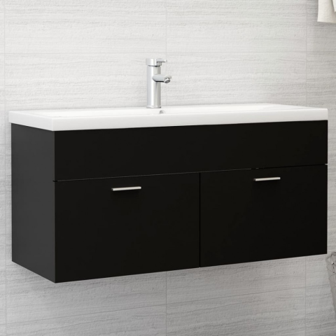 Fekete forgácslap mosdószekrény beépített mosdókagylóval