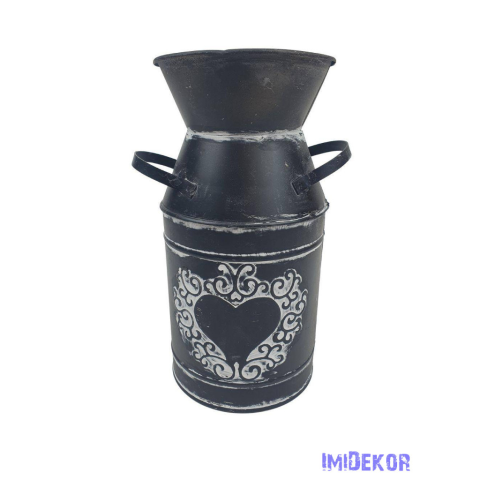 Fekete inda és szívmintás bádog kanna dekorációs kellék árgrafikon