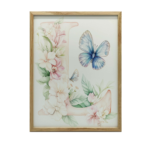 1 kép FEKETE KERETES FALI PLAKÁT 'L' BETŰ VIRÁGOK PILLANGÓK 70X100
