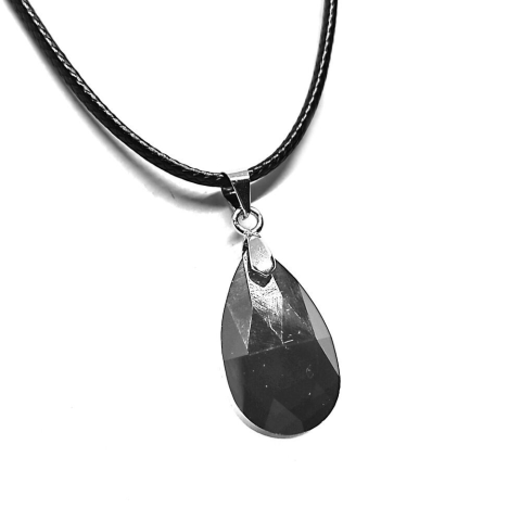 Fekete kristály csepp medál bőr lánccal II. nyaklánc 1 kép