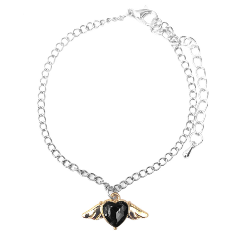 1 kép Fekete kristály szív angyalszárnyas ezüst színű karkötő