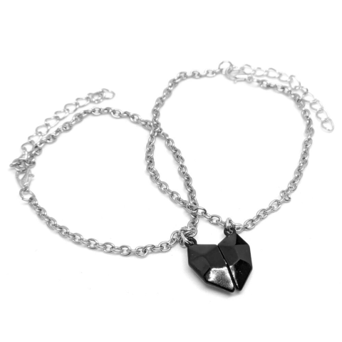 1 kép Fekete Mágneses Szív charmos ezüst színű páros karkötő