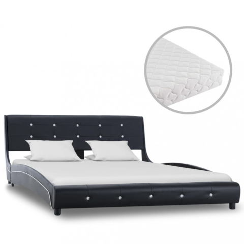 1 kép Fekete műbőr ágy matraccal 140 x 200 cm