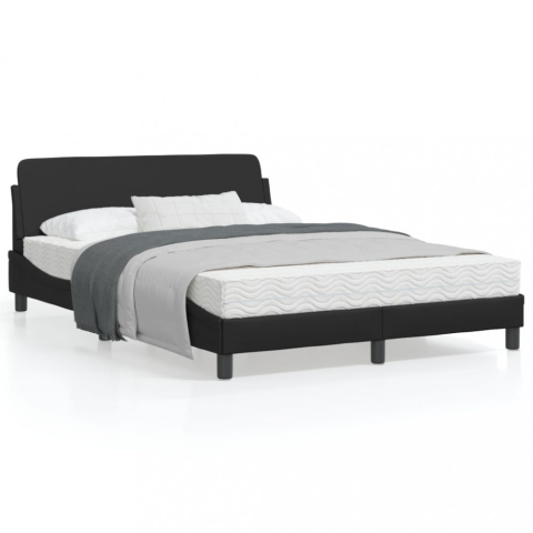 Fekete műbőr ágykeret fejtámlával 140 x 190 cm
