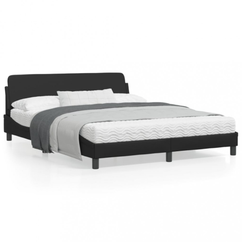 Fekete műbőr ágykeret fejtámlával 160x200 cm ágy és ágykellék termékleírás