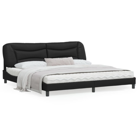 1 kép fekete műbőr ágykeret fejtámlával 200x200 cm