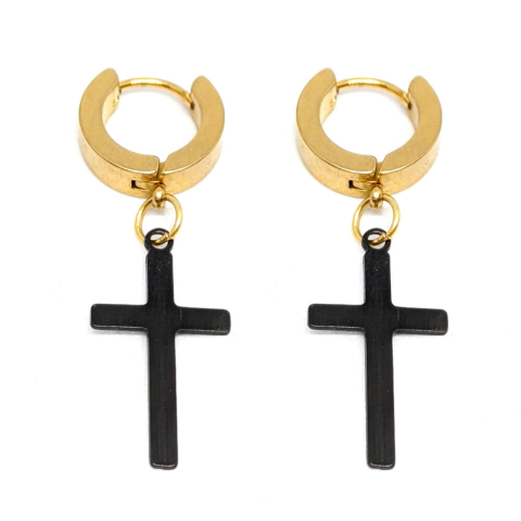 1 kép Fekete Nemesacél kereszt fülbevaló arany színű akasztóval
