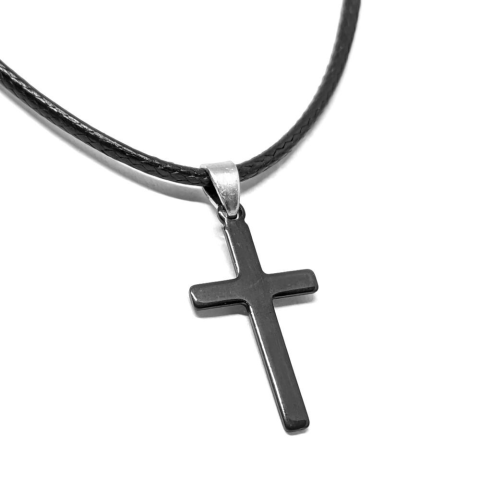 1 kép Fekete Nemesacél Kereszt medál fekete bőr nyaklánccal