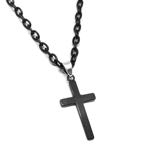 1 kép Fekete Nemesacél Kereszt medál fekete nyaklánccal