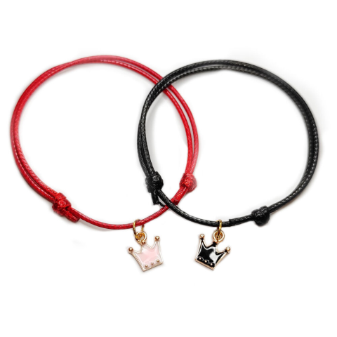 1 kép Fekete-piros zsinórszövet karkötő fekete és pink tűzzománc korona charmmal