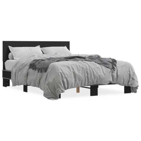 1 kép fekete szerelt fa és fém ágykeret 120 x 200 cm