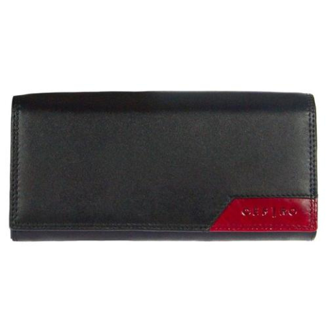 Fekete színű 2 aprótartós bőr pénztárca bordó betéttel Cefiro