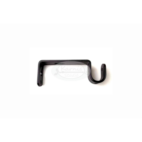 Fekete színű fémből készült hajlított tartó konzol 16 mm átmérőjű 1 rudas karnishoz. A faltáv kb. 10-11 cm. 1 db / csomag A csomag tartalmazza a felszereléshez szükséges tipliket és csavarokat is, valamint a karisrudat rögzítő kisebb csavarokat is, ame