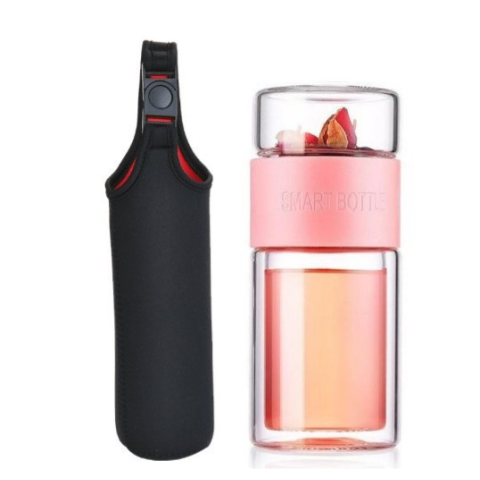 1 kép Fekete teásbögre szűrővel és kulacstartó tokkal, teásüveg formájú
