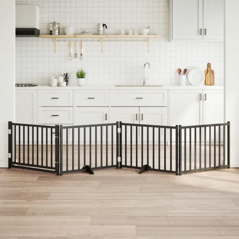 fekete tömör fa 4 paneles összecsukható kutyakapu ajtóval 320cm kutyafelszerelés árgrafikon