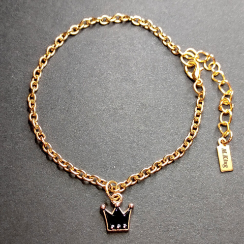 1 kép Fekete tűzzománc korona charmos arany színű karkötő
