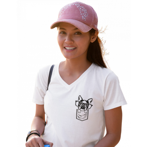 1 kép Fekete vonalas zseb állatok - Női V Nyakú Póló