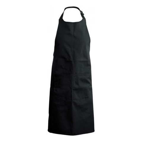 1 kép Fekete zsebes mellrészes kötény, állítható nyakpánttal