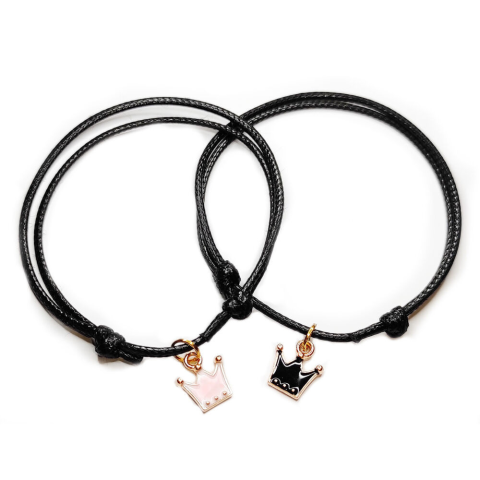 1 kép Fekete zsinórszövet karkötő fekete és pink tűzzománc korona charmmal
