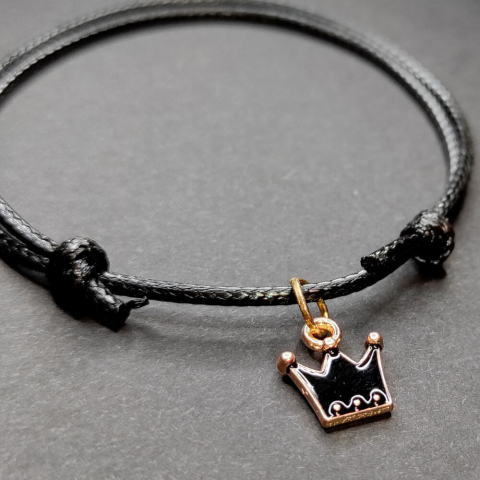 1 kép Fekete zsinórszövet karkötő fekete tűzzománc korona charmmal