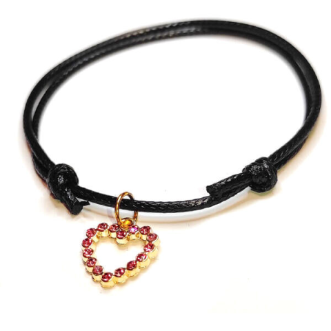 1 kép Fekete zsinórszövet karkötő pink kristály szív charmmal