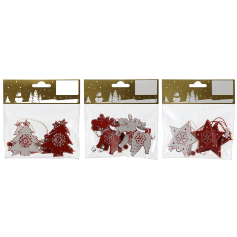 1 kép Felakasztható fadísz piros/fehér 3-féle változatban 4 darab