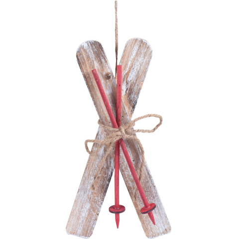 1 kép Felakasztható karácsonyfadísz sítalp síbottal 18 cm 2-féle változatban