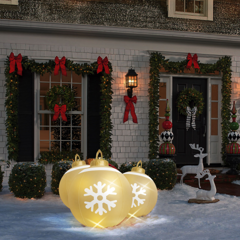 A karácsonyi időszak legújabb, innovatív dekoreszköze a felfújható, megvilágítható díszgömb. Nagy méretének köszönhetően elhelyezhető