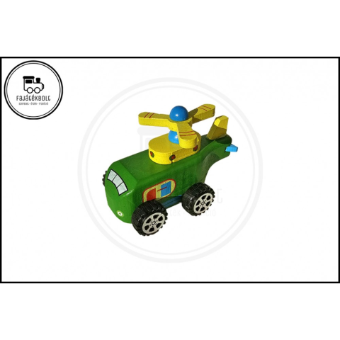 Fa helikopter Felhúzható, így magától megy és pörög a propellere. Anyaga: Fa Mérete: Hosszúság: 9,5 cm Szélesség: 7 cm Magasság: 5,5 cm Tisztítása: száraz törlőkendővel Ajánlott korosztály: 3 éves kortól A termék személyesen megtekinthető az Orig