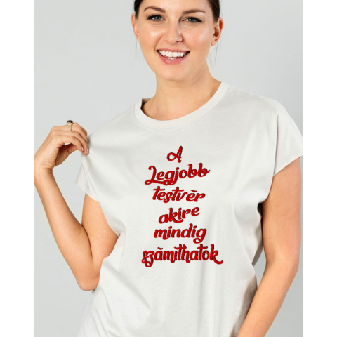 Feliratos női póló, a legjobb testvér, akire mindig számíthatok. Lepd meg testvéred egy szuper ajándékkal születésnapján, névnapján. Mond el egy vászon női pólóval mennyit jelent ő neked. Egy póló tökéletes ajándék, később praktikus használati tárgyá válh